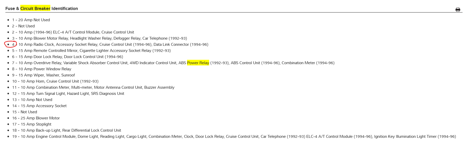 Looks like this fuse will run radio clock, accessory socket and cruise control as well. So, if this fuse is burnt out you will have issues with those areas as well.