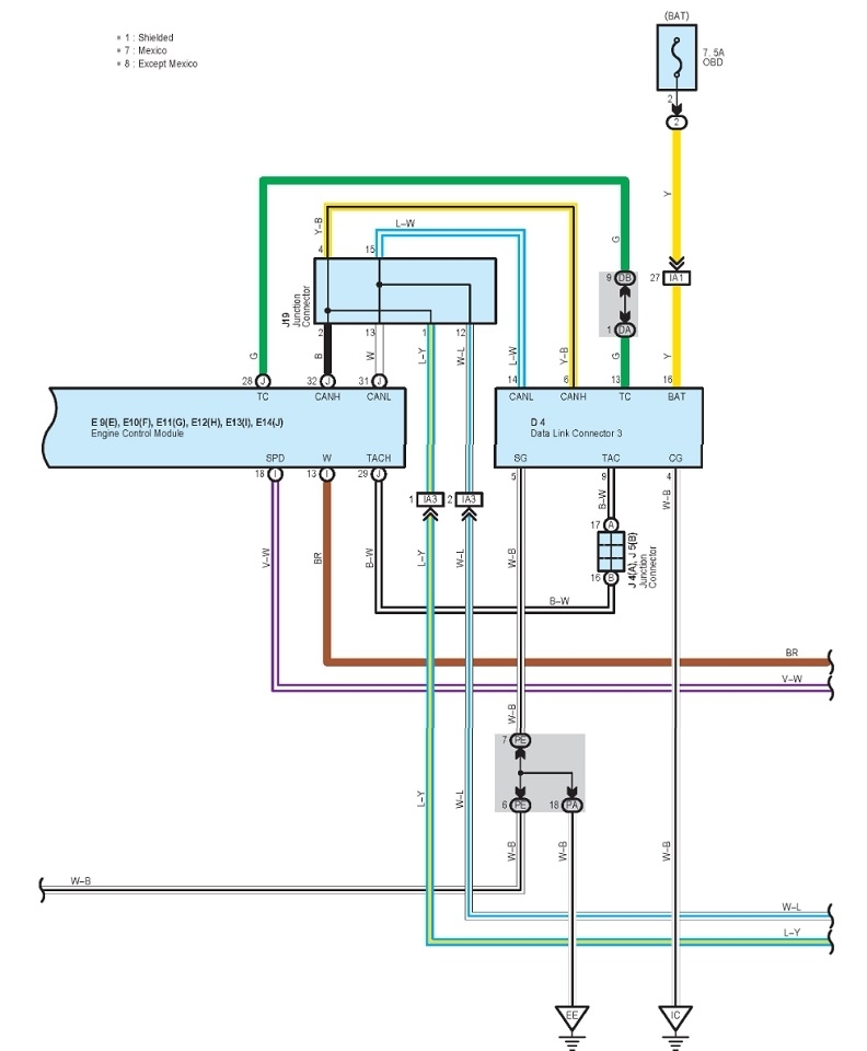 I'm missing almost all the wires in my OBD port. I could sure use a wire diagram so I could fix it the person that owned the truck before me installed a car alarm and used some of the wires from the OBD port.