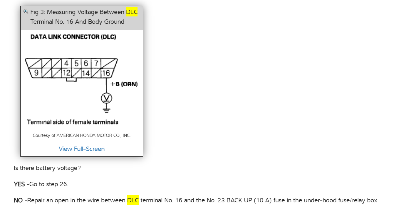 Hello, Pin 16 of the Data Link Connector is 12-volt power, Pins 4 and 5 are Grounds. The power for Pin 16 comes from Fuse 23 Back up (10Amp) in the under-hood fuse panel. The other pins on the DLC are data lines.