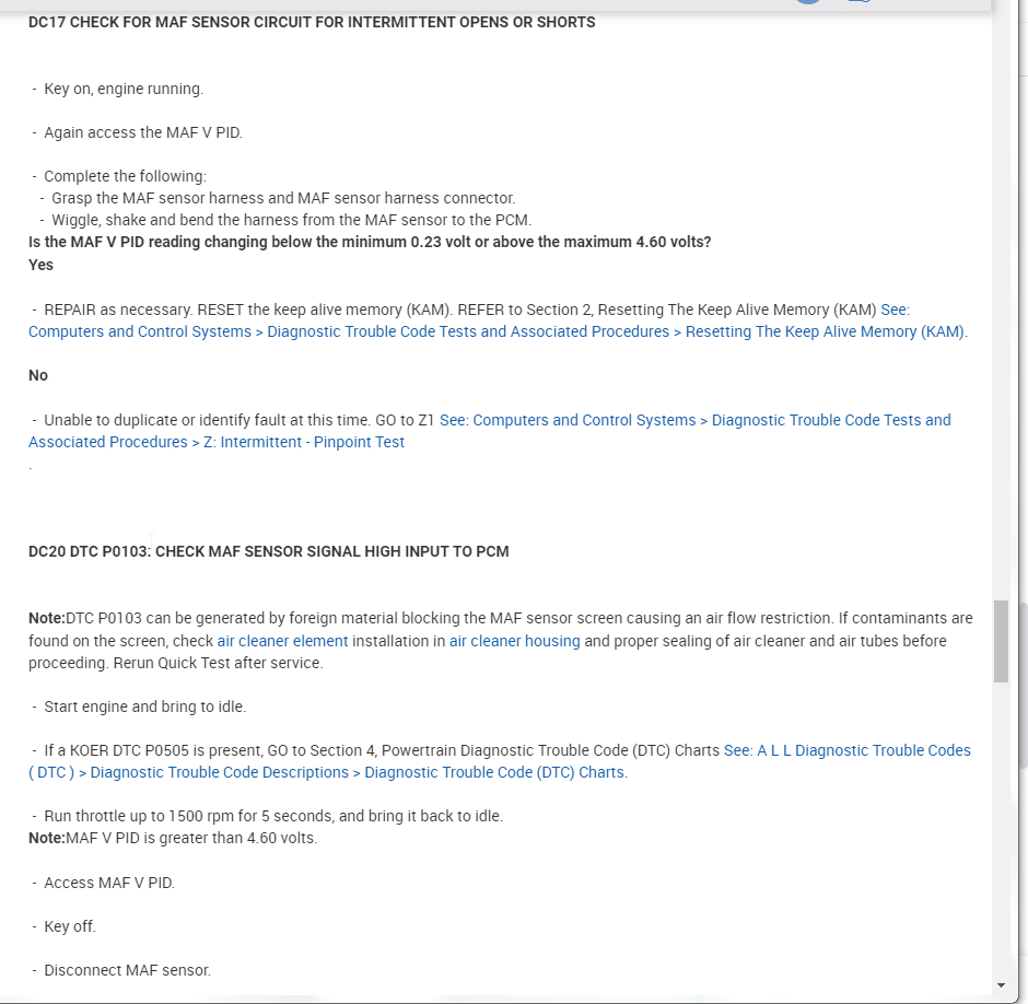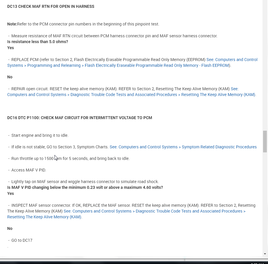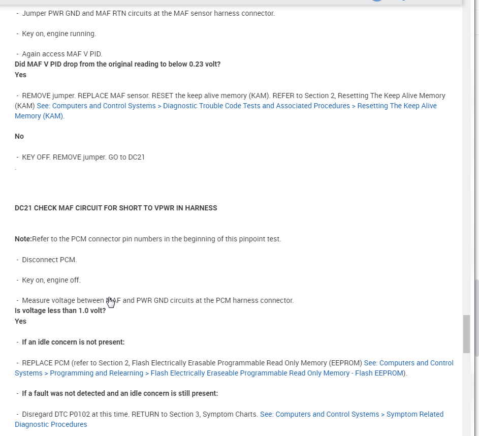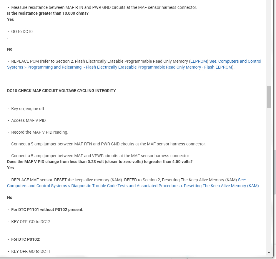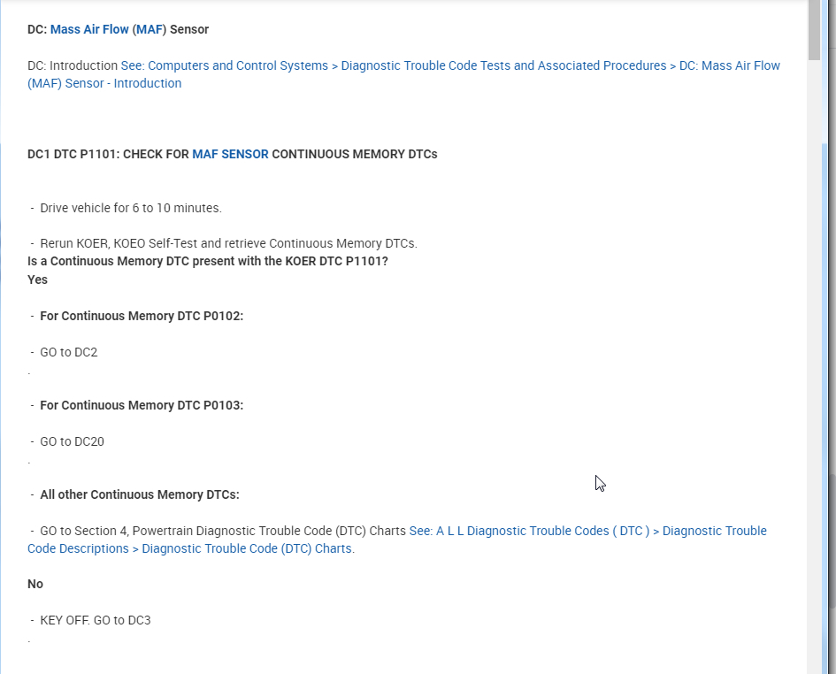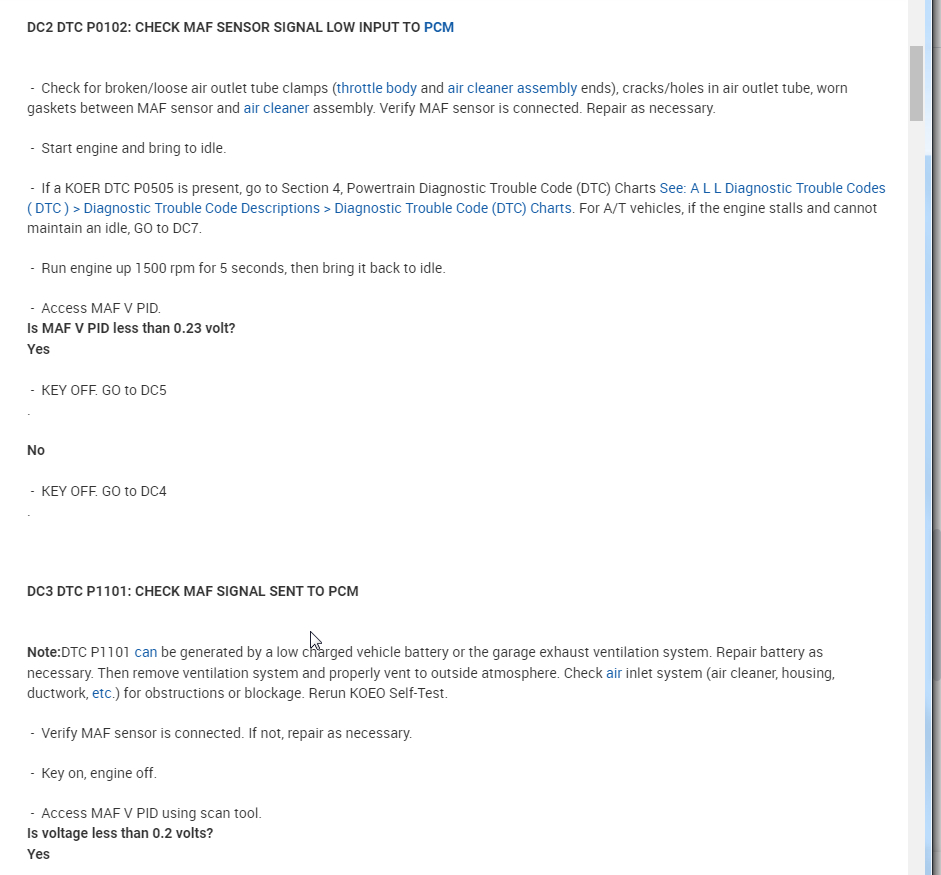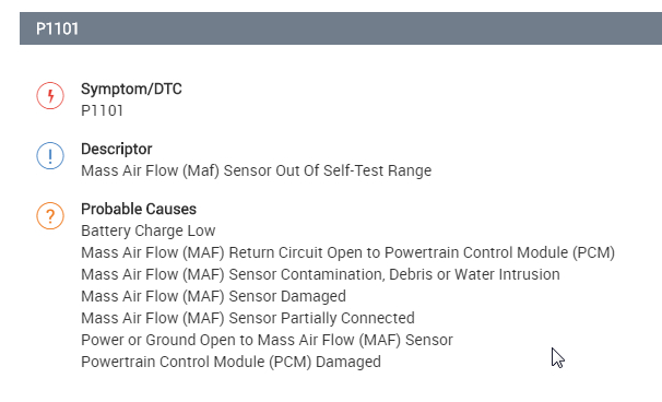 Here is the testing for the P1101. Just let me know what scan tool you were using as well. That may be the reason it is pulling the P0101. If that is the case, then let's just use this test. Thanks