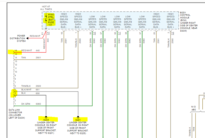 The data link connector (DLC) is powered by the HVAC control/ignition fuse in the body control module.