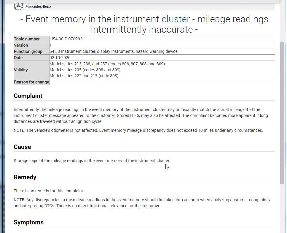 I attached this below. However, this is not with the odometer. They clearly state that the odometer is not affected but if it were me, I would contact Mercedes directly and register a complaint because they may have a correction for this or have other complaints.