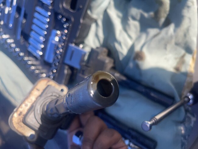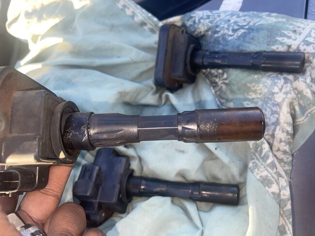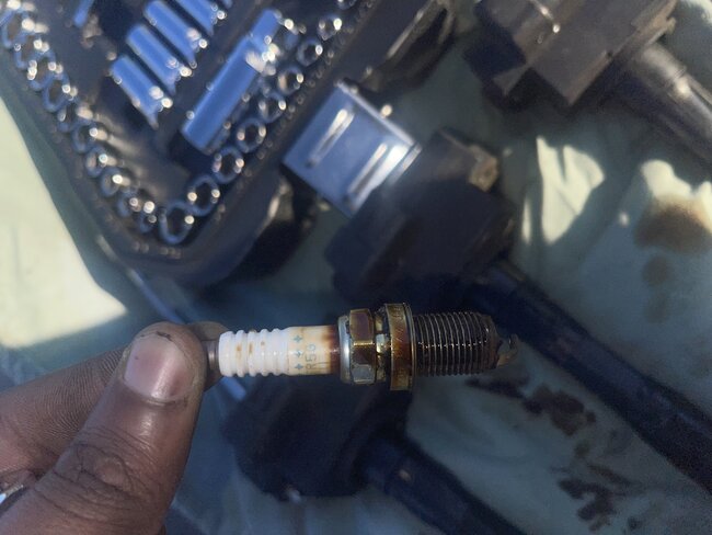 I did the compression test and found out quickly that oil is on almost all the spark plugs. Then there’s one cylinder which I believe coolant is getting into. Because the ignition coil smells like coolant, and it’s the only coil that’s brownish.