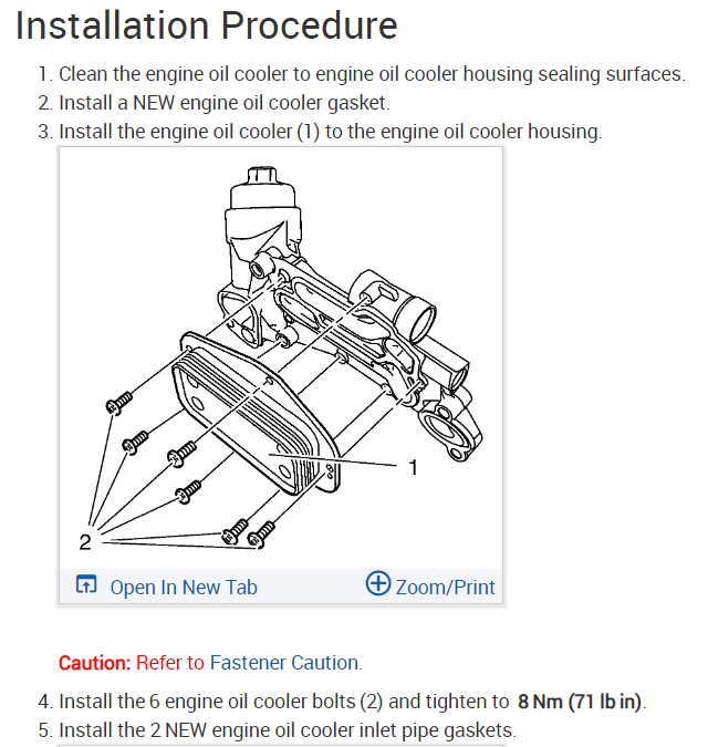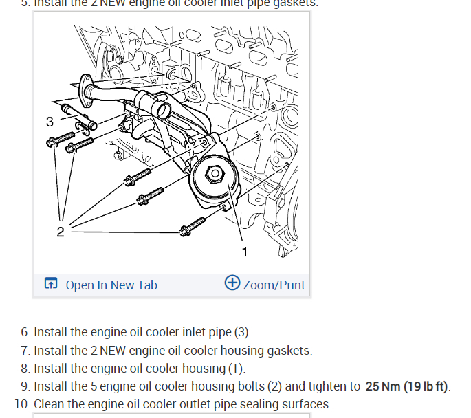 Sure, here is the engine oil cooler replacement instructions with torque specs. Check out the images (below). Let us know if you need anything else.