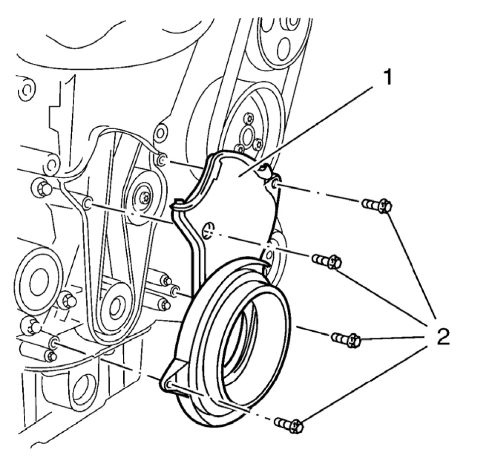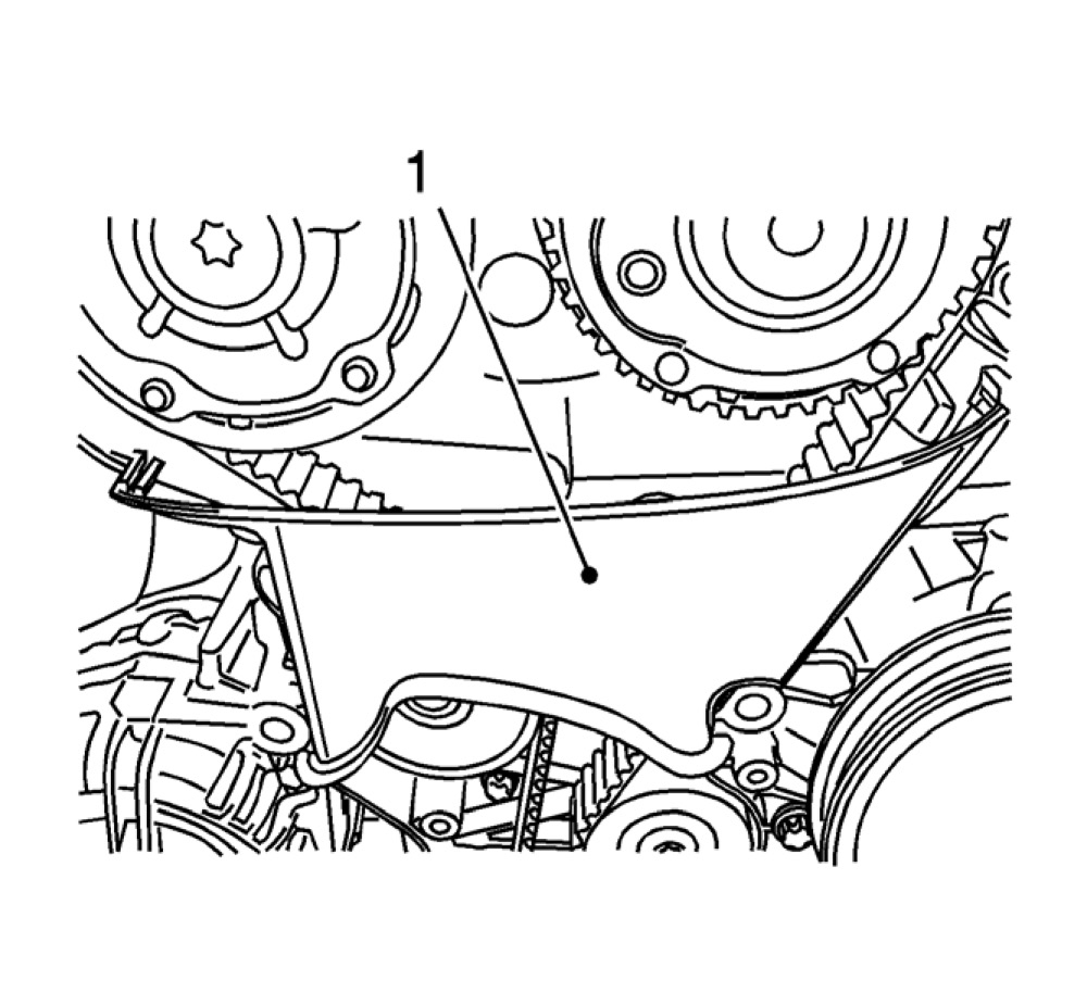 33. Remove the center front timing belt cover (1).