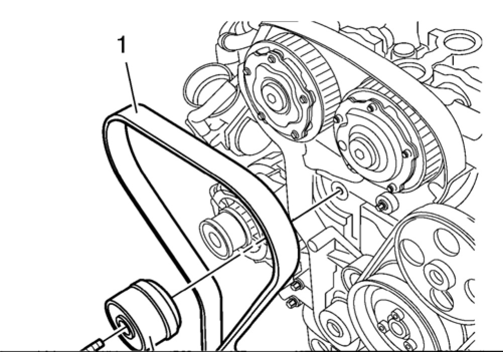 37. Remove the timing belt (1).