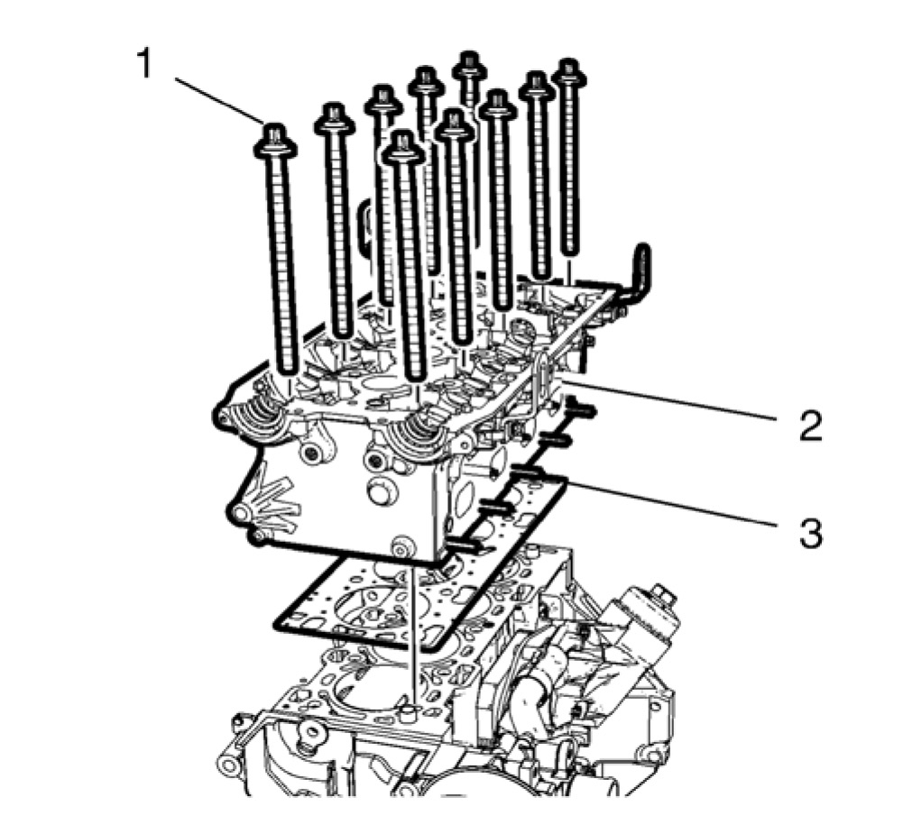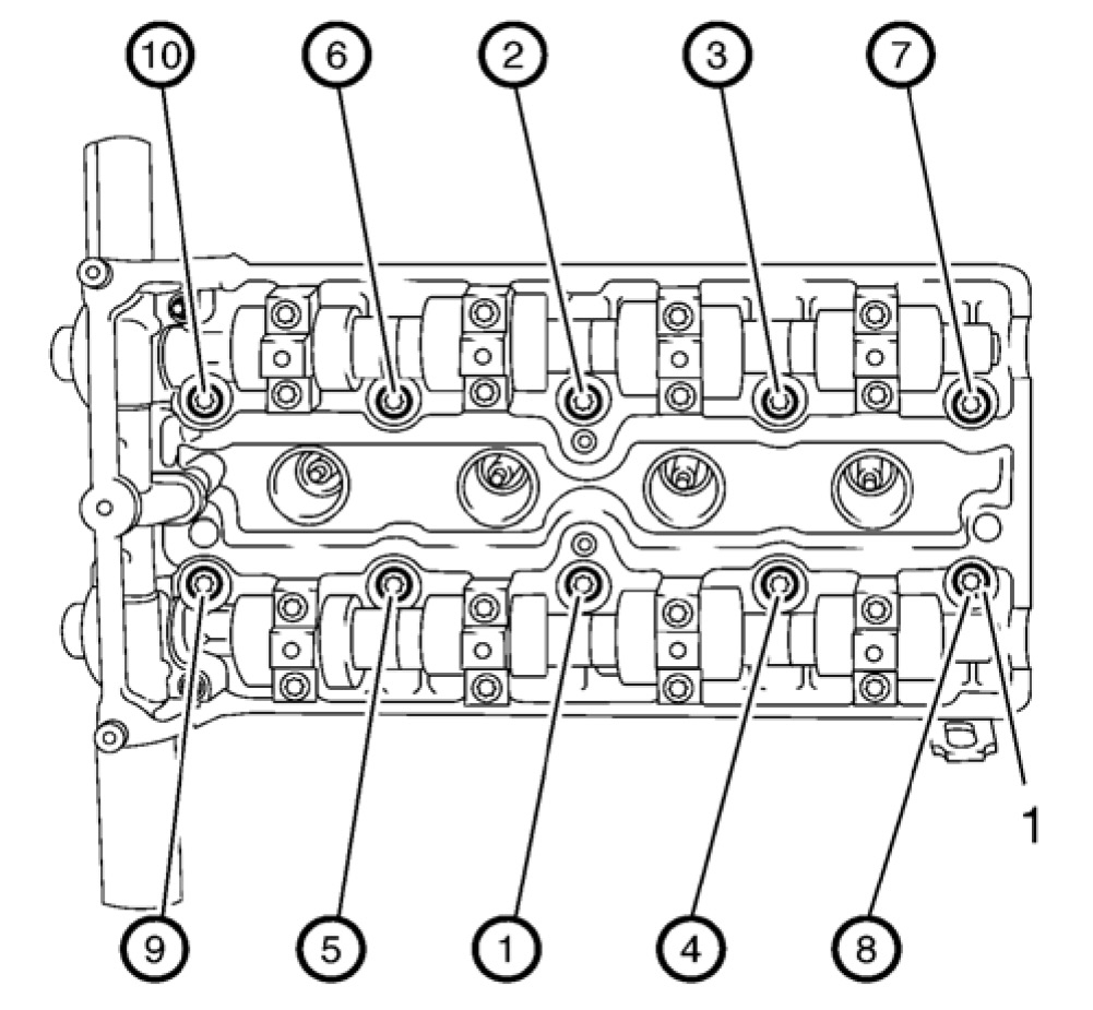 55. Loosen the 10 cylinder head bolts in sequence as shown.