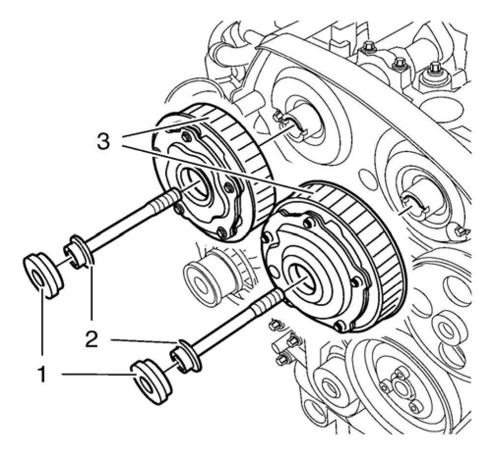 14. Install intake camshaft position actuator adjuster and/or the exhaust camshaft position actuator adjuster (3).