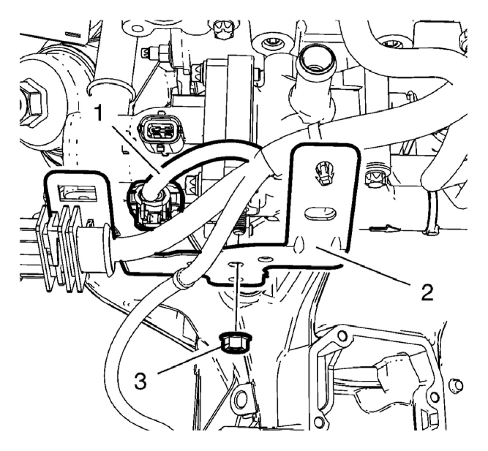55. Install the engine coolant thermostat housing bracket nut (3) and tighten to 6 N.m (53 lb in).