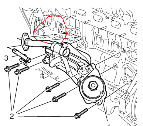 3. Remove the 2 engine oil cooler outlet pipe bolts (1).