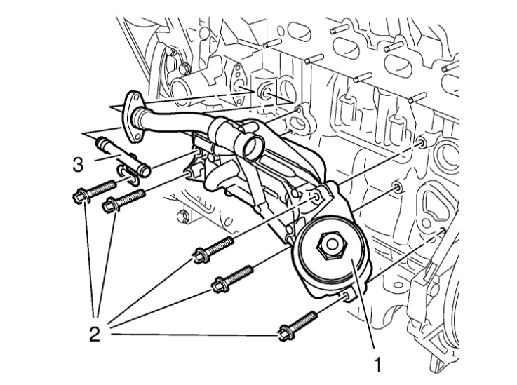 9. Remove the engine oil cooler inlet pipe (3).