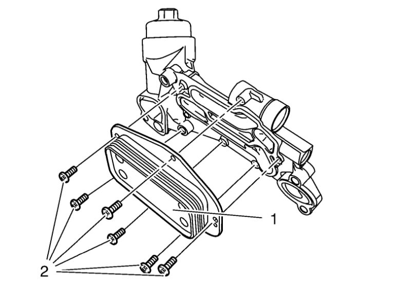 7. Remove the engine oil cooler housing (1).