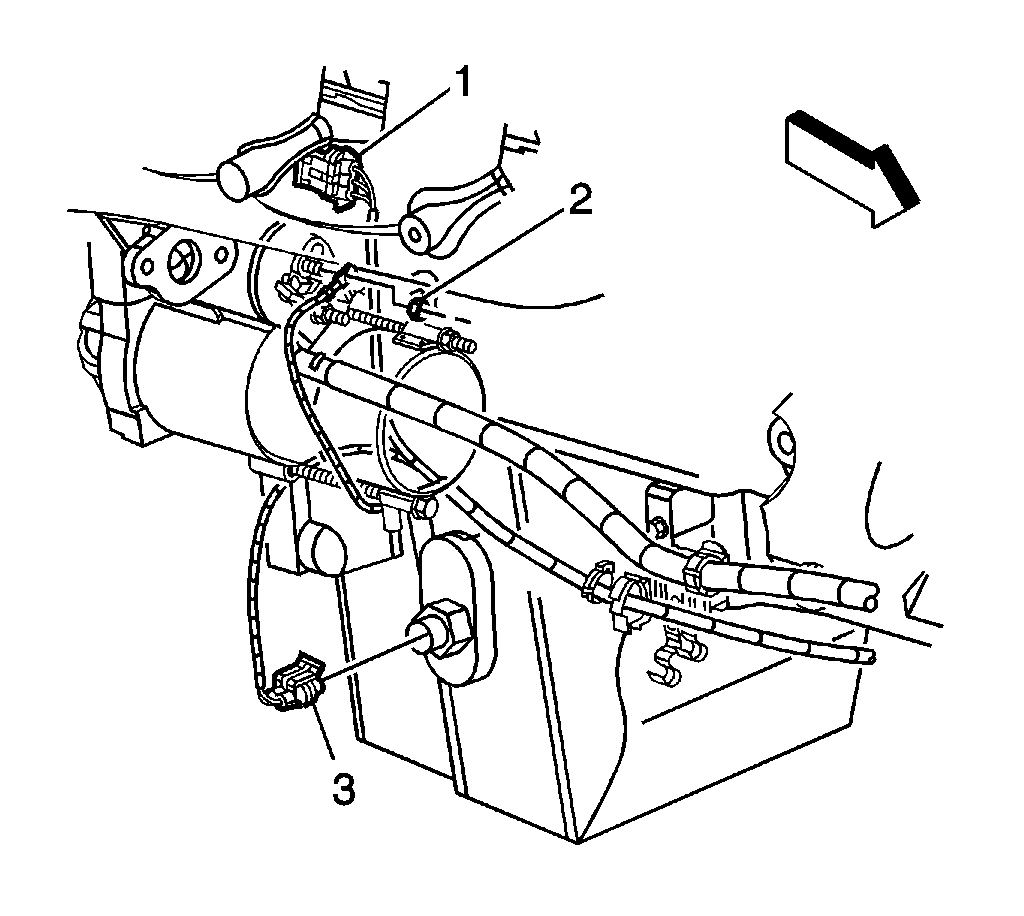 10. Install the positive battery cable clip and bolt to the oil pan.