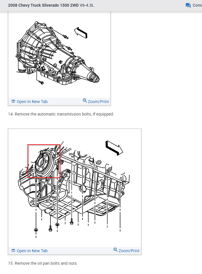 17. If equipped with a manual transmission, remove the two bottom bellhousing bolts.