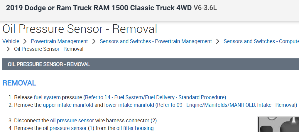 I just want a video on how to replace the oil pressure sensor in the truck listed above 1500, 3.6l VVT.