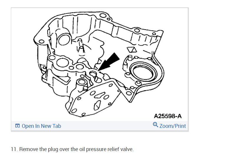 The oil pressure relief valve is in the front cover which will require removal of the front cover.