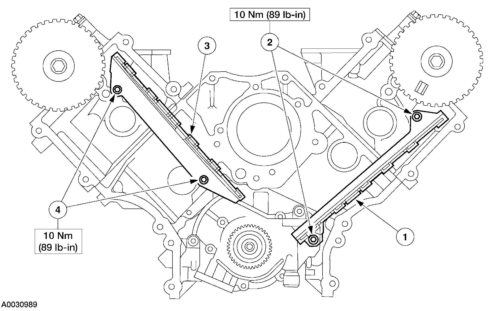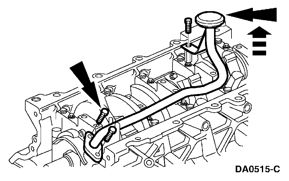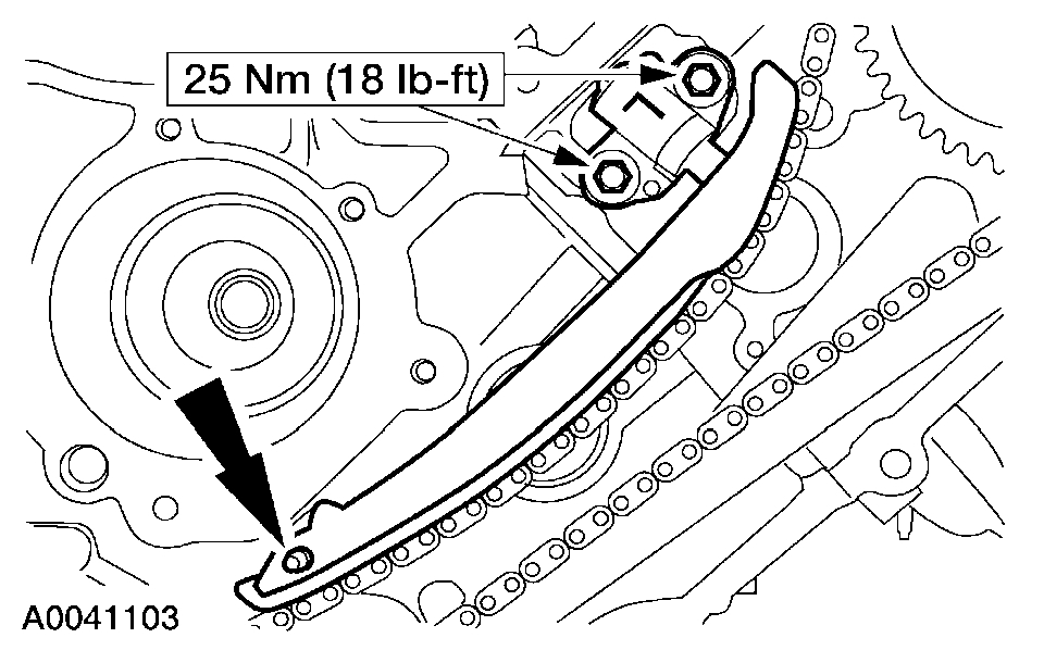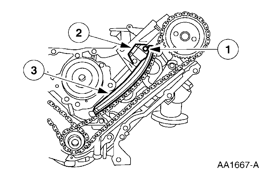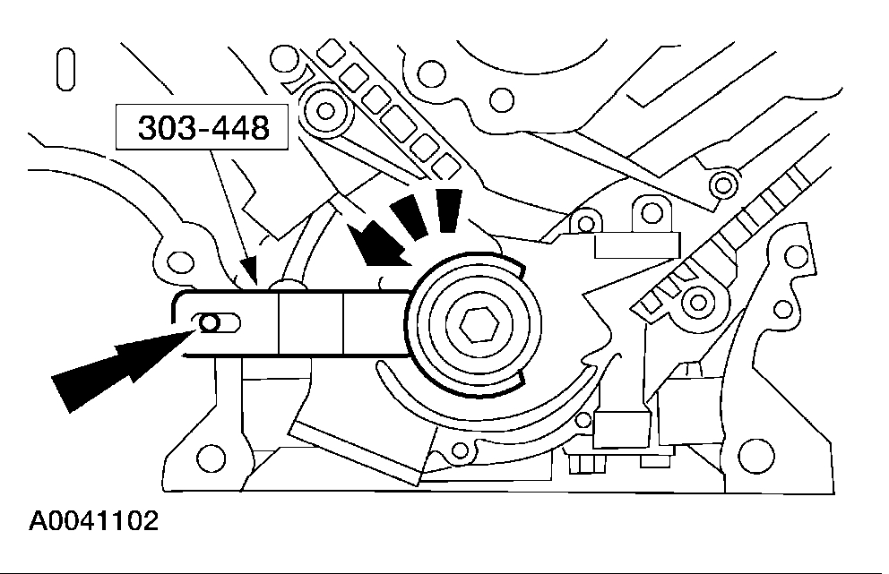 10. NOTE: The LH timing chain tensioner arm has a bump near the dowel hole for identification.