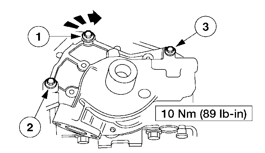 3. Remove the three bolts and the oil pump screen and pickup tube.