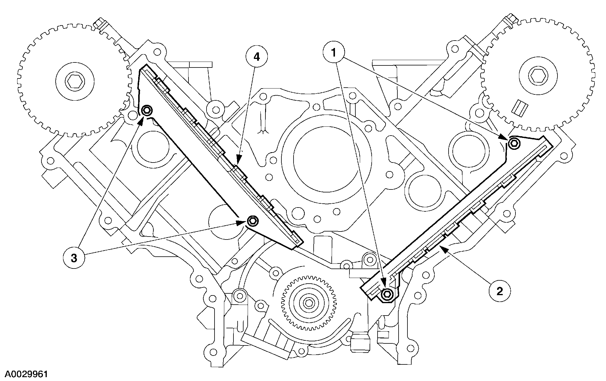 1. CAUTION: Timing chain procedures must be followed exactly or damage to valves and pistons will result.