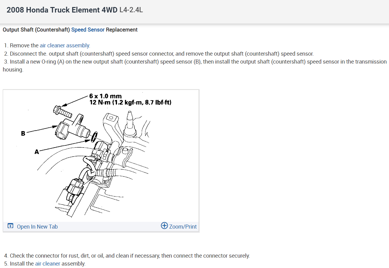 As far as the removal and installation is concerned, it is very simple. I attached the directions below as well. There is an O-ring on the sensor. When you install the new one, make sure everything is clean and free of corrosion on the transmission. Also, lubricate the o-ring with transmission fluid before installing it.
