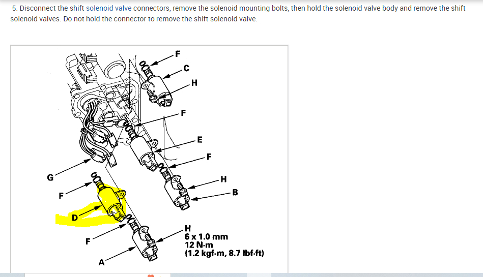 Where is the solenoid D at if it was dirty where would I have to change it so you know where it’s located so I could take it off and change it? Because I took it to Honda dealership and put it on a computer they never said anything about a solenoid D that’s what I told them that shaft D was coming up a code.
