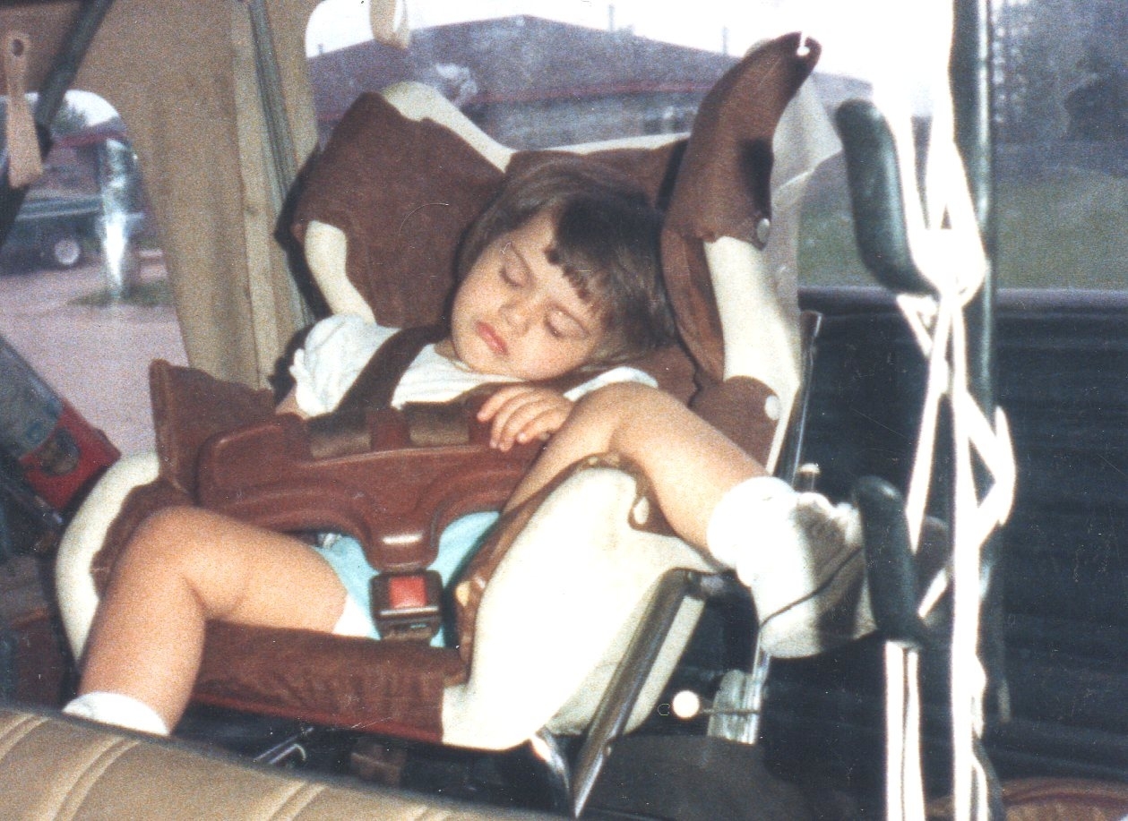 Below is a twenty seven year old picture of my munchkin in the spillage compartment of Jeep #5 (of 7).