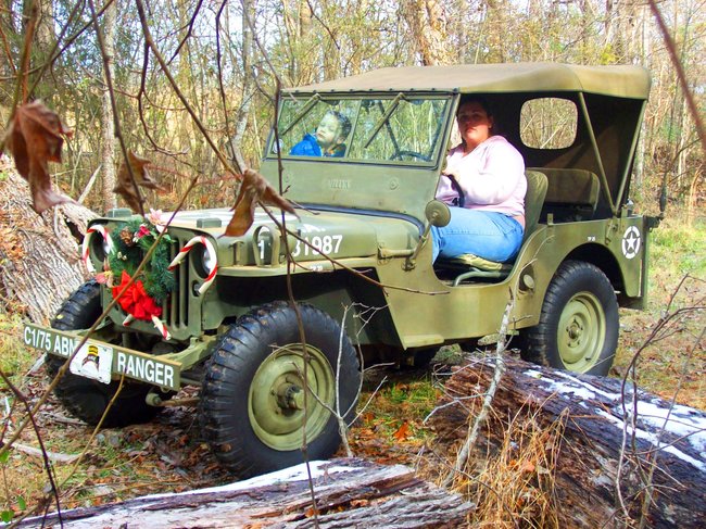 Here she is again in a twenty year old picture hand cranking Jeep #7 (Hood # is her birthday).