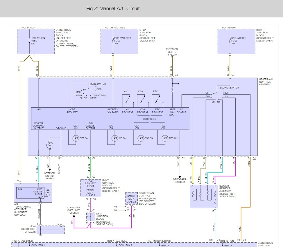 hi my aleros cooling fans will not come on the car overheats at idle but is fine on the highway i checked all relays and fuses jumper wired fans and both worked when wired straight to battery any ideas about whats going on also i wondered could the fact that the ac is not working have any thing to do with it could it be possible that the pcm reads no pressure and does not turn on compressor fan because fan should come on when ac button is on right?