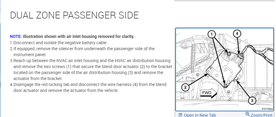 I attached the process for the front blend door actuator. This is not uncommon when the plastic gear inside of it strips and it starts clicking.
