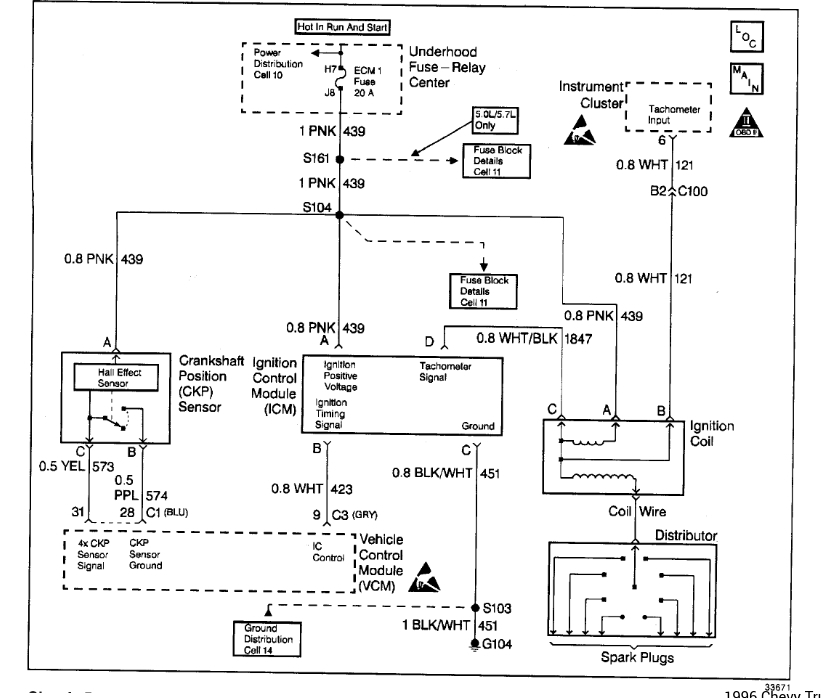 I may seem like a lost cause, I get rpm signal crazy and sometimes I don't get nothing.. noticed oil pressure gauge goes crazy too then back to normal..my test light lit up pointing to my feed for the ignition coil and ignition module and doesn't flicker while cranking. also the control wire (white) is lit with test light (key off) when turning the key on the light goes off from coil n module.. I checked the ground from module even while cranking the test light doesn't get dim.. i have no spark ..test light is lit while pointing to the 20a fuse on the ECM1.. with key on but when key off there's no light. I do not know what to do next.