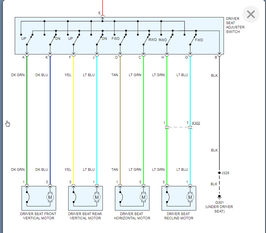Which seat are you seeing this wire and which function on the seat is not working? I imagine it is one of the functions with the blue wire but which is recline or the rear vertical. Clearly if the wire is not connected properly then that would be the issue.