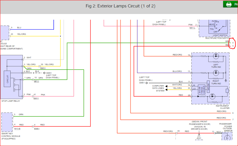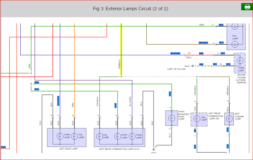 I have attached a wiring diagram for your left rear turn/tail/brake light circuit for you. I have also attached a tutorial showing how to test. Be sure to check all the ground wires. Hope this helps and feel free to ask any questions if needed. Thanks for using 2CarPros.
