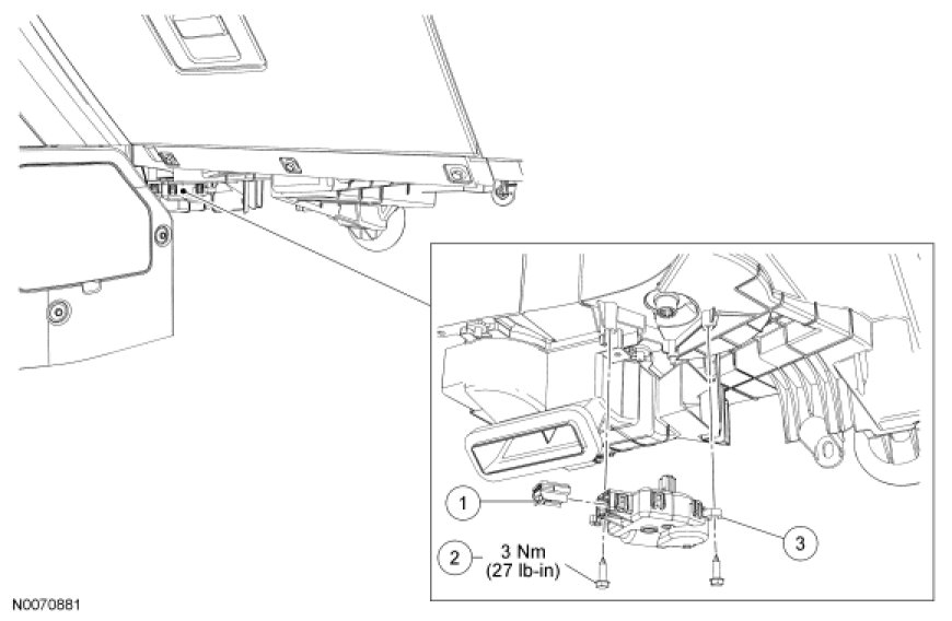 NOTE: The LH temperature blend door actuator is present on dual-zone Electronic Automatic Temperature Control (EATC) vehicles to control the LH temperature blend door only. Vehicles equipped with Electronic Manual Temperature Control (EMTC) are not equipped with this actuator. For EMTC vehicles, refer to Temperature Blend Door Actuator - RH See: Air Door Actuator / Motor, HVAC > Removal and Replacement > Temperature Blend Door Actuator - RH.