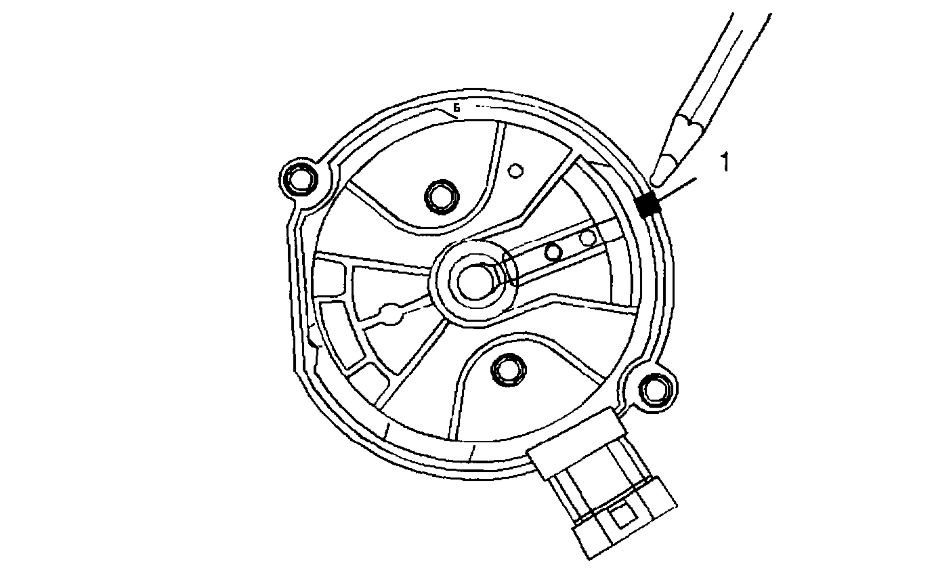 7. Once the distributor is completely seated, the rotor segment should be aligned with the mark on the distributor base in location number (1).
