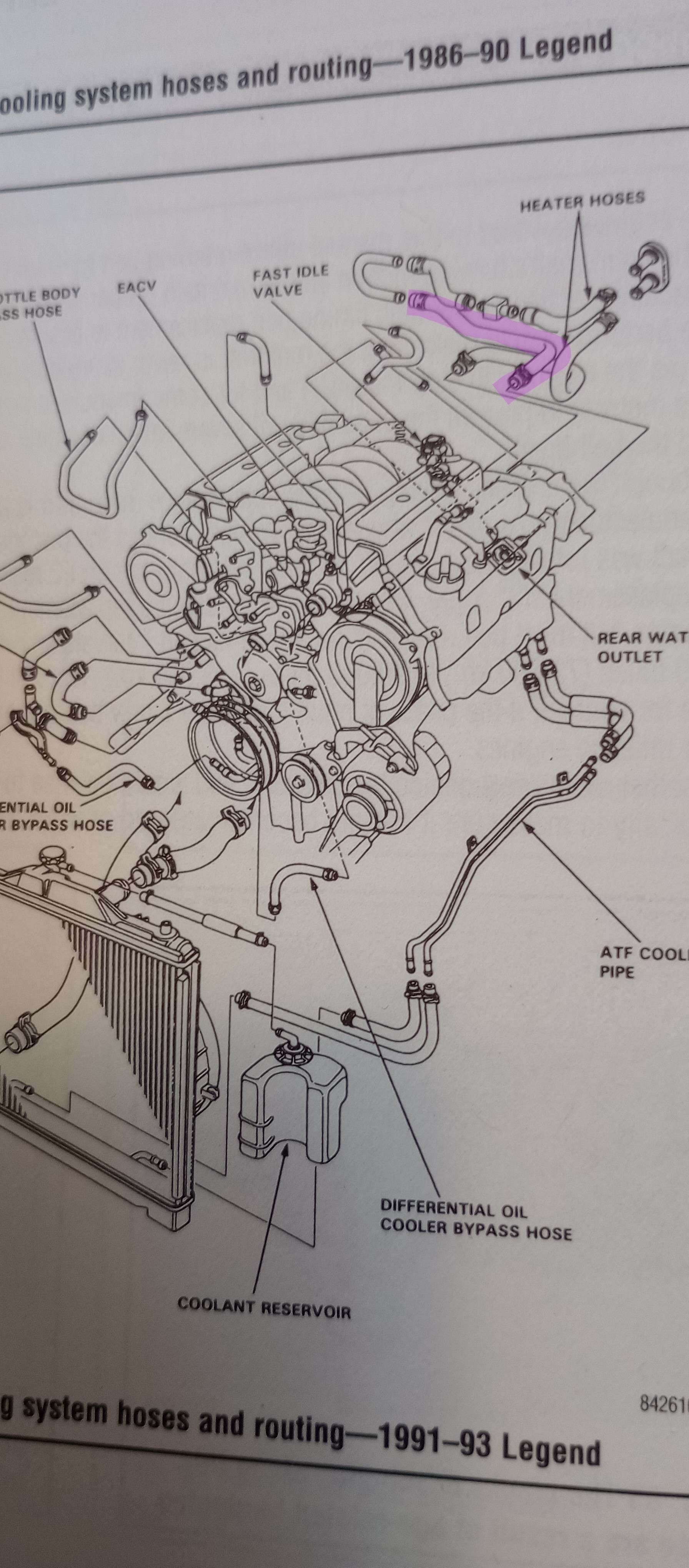 Hi Joe, I have some more info for you about my Acura. I just came from outside. I removed, what I am going to call, a body brace. It's a bent bar with a diameter of approximately 1". It spans from fender-well to fender-well and is attached to the back firewall. Anyway, that allowed me to get a better look at things down there, that and removing the fuel injection cover on the driver side. I purchased a diagnostic mirror from Walmart for $4.98, which also helped me to see things better.