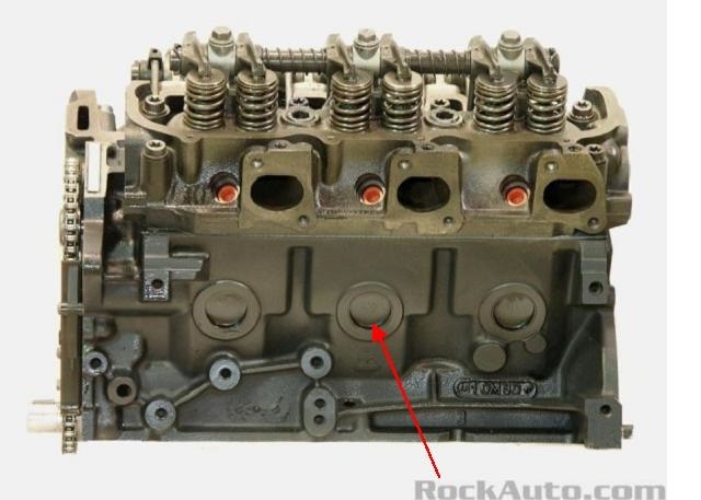 Below is a photo of one side of your engine. I added a nifty red arrow pointing to one of the core plugs, (aka "freeze plugs"). There are three on the other side too. When you have a slow, elusive leak that leaves a puddle half way between the radiator and the firewall, and a little to one side of the engine, these are the best suspects. They leak from a hole corroding through them. That is much more common when the antifreeze is not replaced every two years. Look for rust-colored stains, or a crusty build-up on those plugs. If you see that, irritate the area with a screwdriver. If one is leaking, you will usually be able to poke the screwdriver through it, then coolant will come gushing out. I can describe how to replace them if necessary.