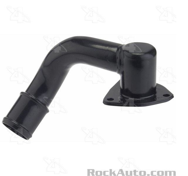 To find the thermostat, follow the upper radiator hose to the housing. It is shown in the second photo. If the engine is overheating because of a leaking cylinder head gasket, you are likely to find lots of pressure when you remove the radiator cap, but the coolant will be cold, not hot, and it will not be steaming. The upper radiator hose will be cold too. If you find the coolant is hot, verify the radiator fan is spinning the correct direction. There are many Ford applications where the serpentine belt can be installed incorrectly, causing the water pump and fan to spin backward. Check that the ribbed side of the belt runs on the ribbed pulleys, and the smooth back side runs on the smooth pulleys.