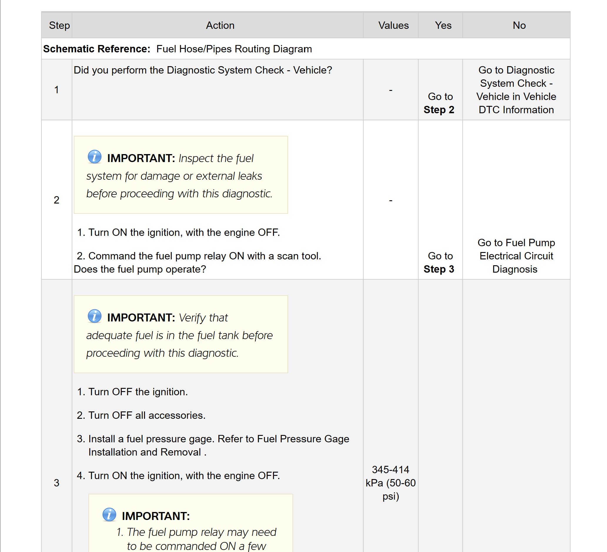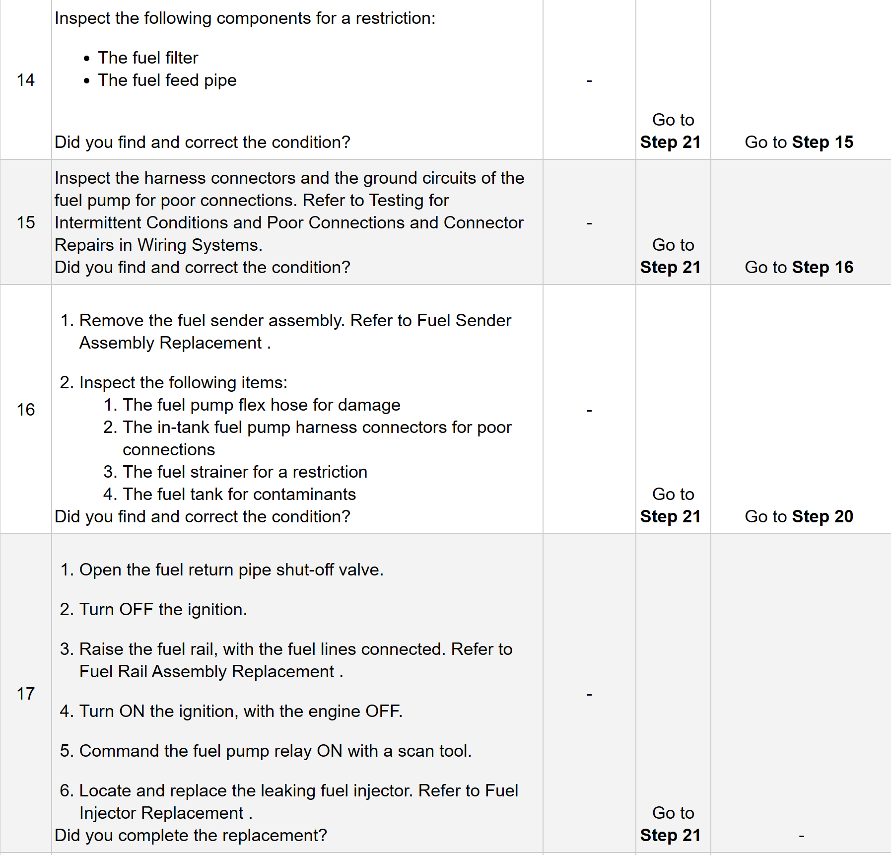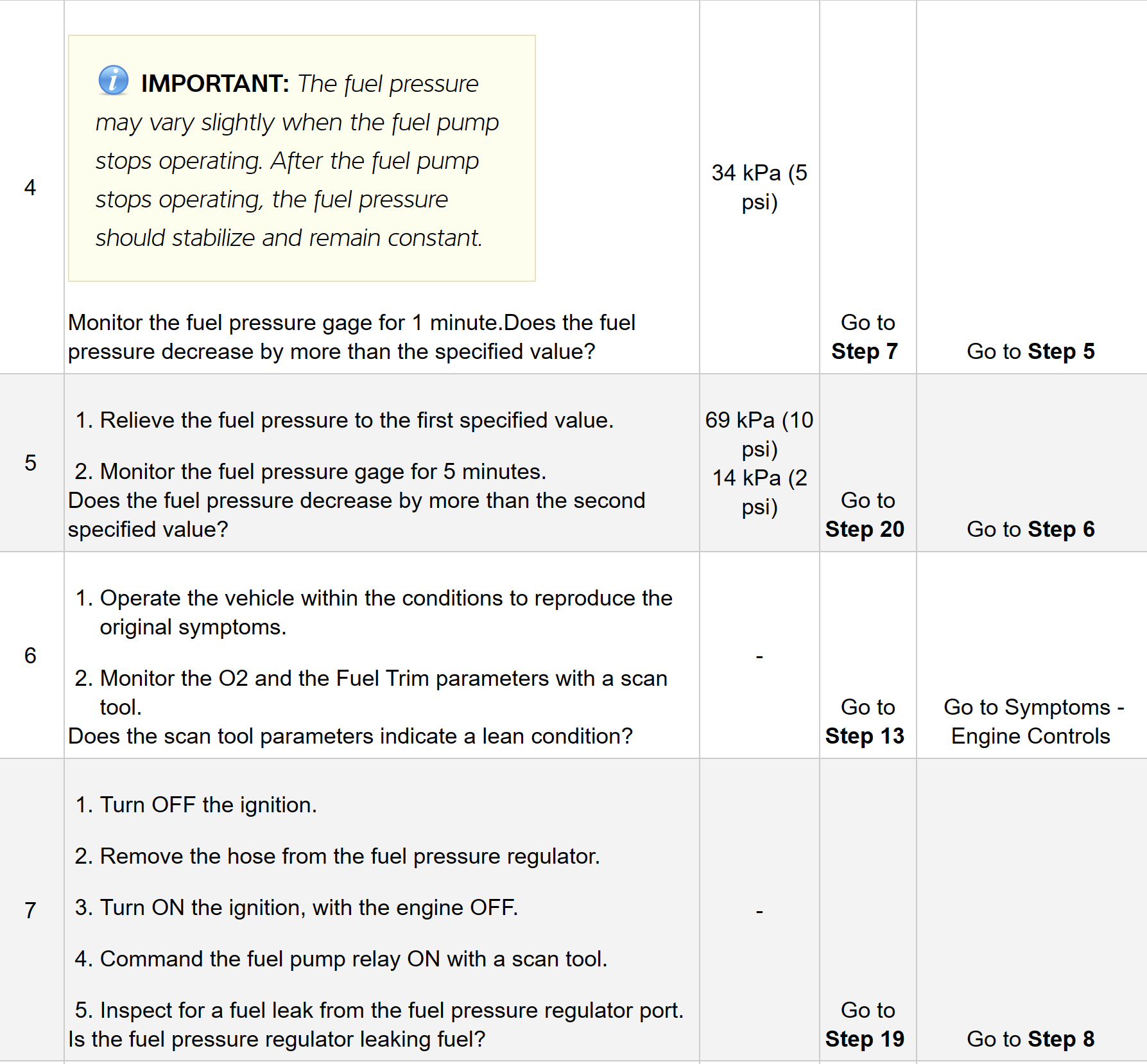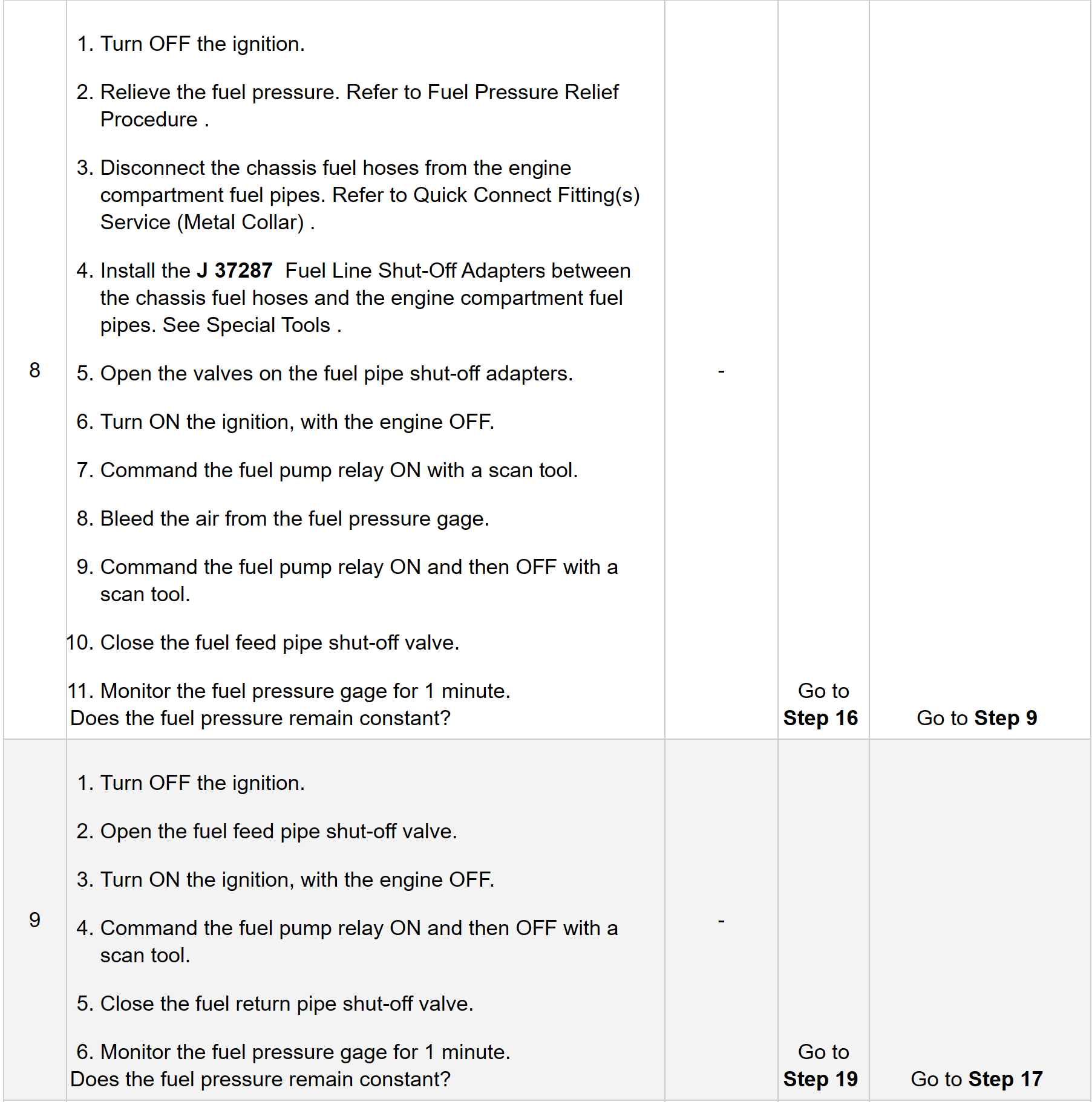 Also, I am adding a flow chart for Fuel System Diagnosis for you from my information. Let me know if you have any questions about it. It is designed for use with a scan tool and GM specialty tools, so some of the information is irrelevant.