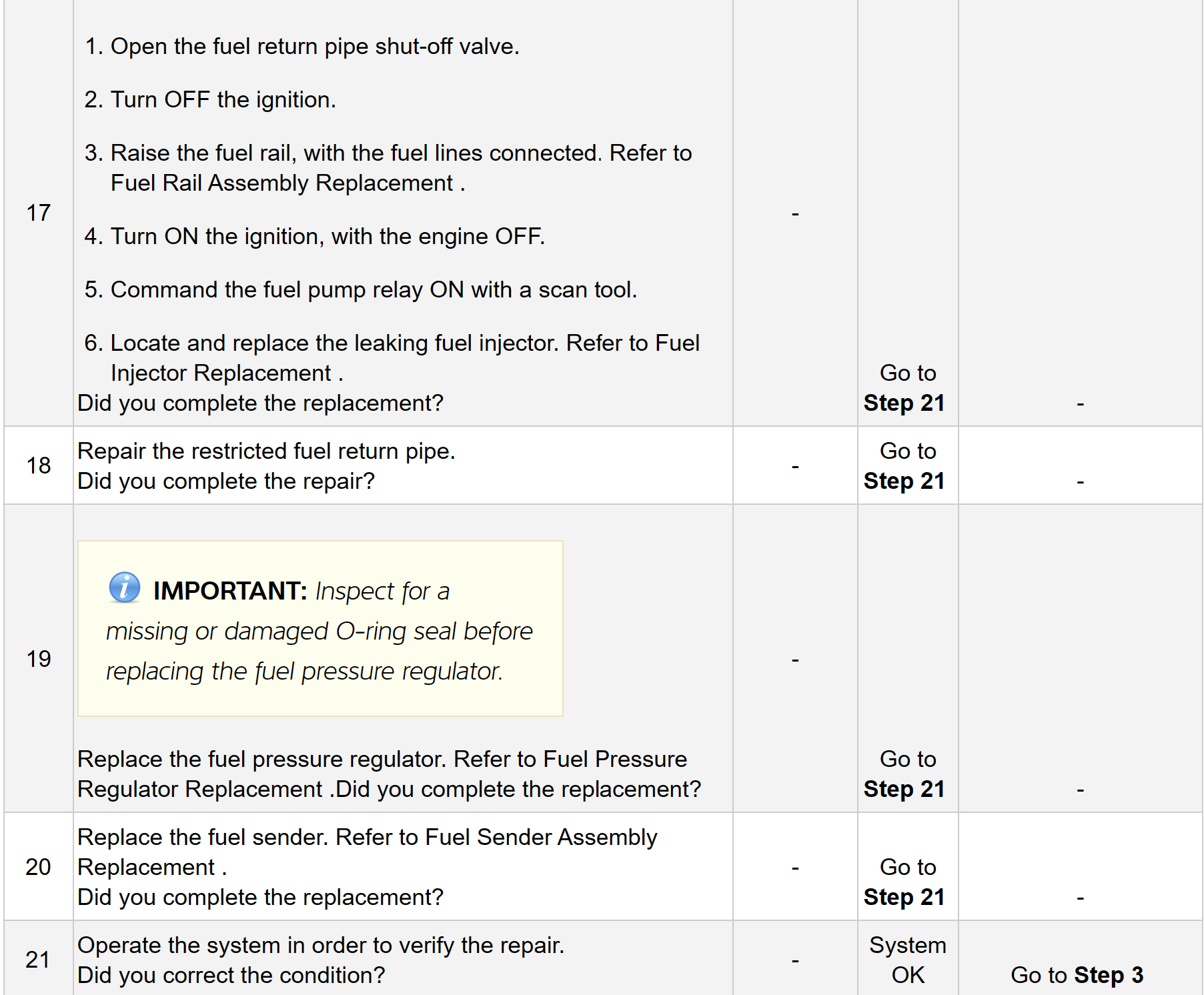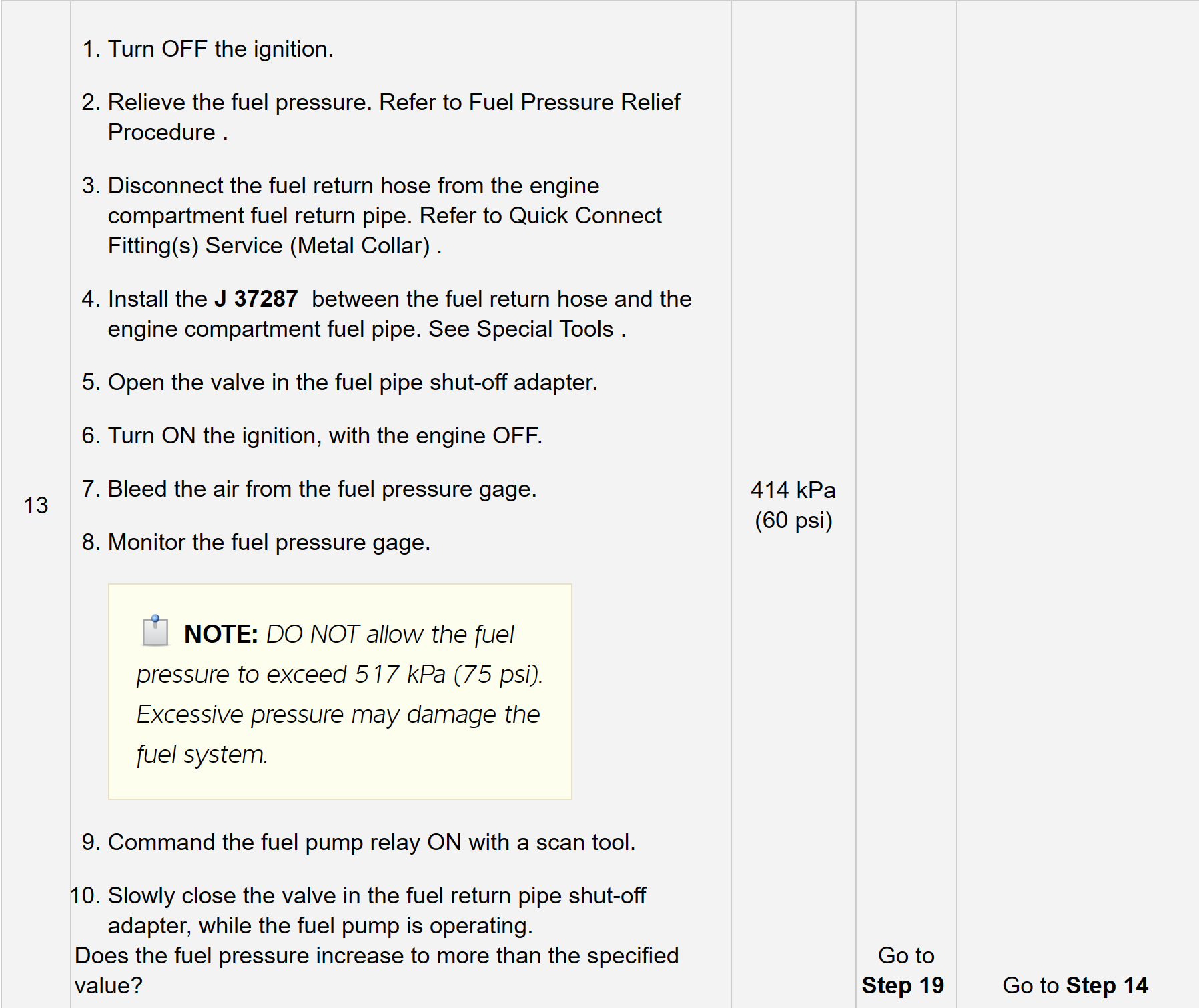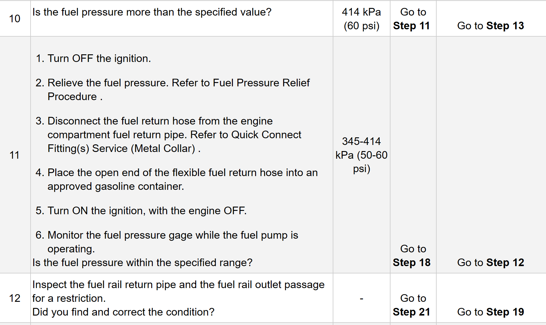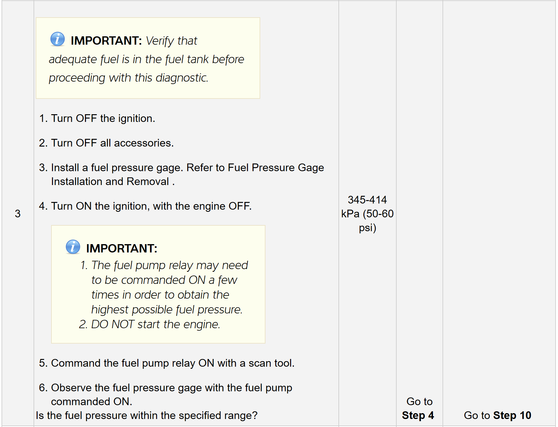 Also, I am adding a flow chart for Fuel System Diagnosis for you from my information. Let me know if you have any questions about it. It is designed for use with a scan tool and GM specialty tools, so some of the information is irrelevant.