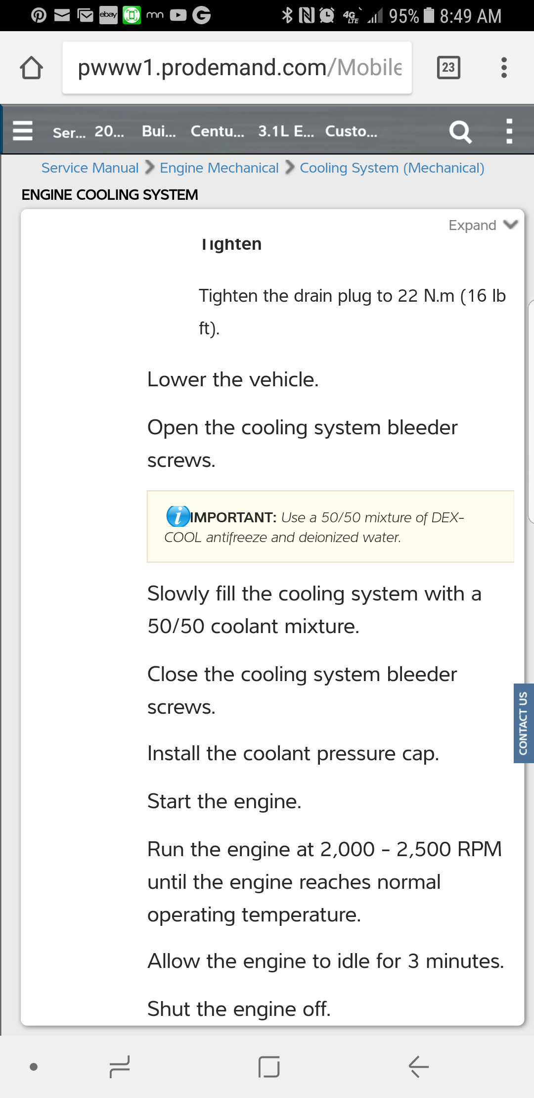 Here is what I have about filling the cooling system after draining it: