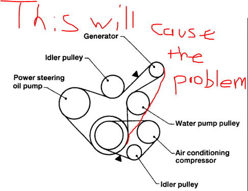 This was how my belt was put on by previous owner this causes the car to overheat in just minutes and also some very violent reverse boiling to the top radiator hose exactly as you described.