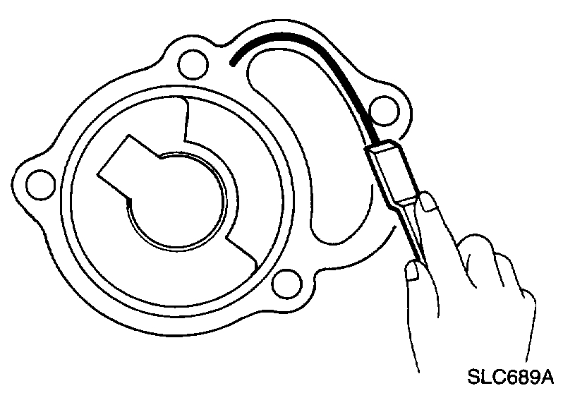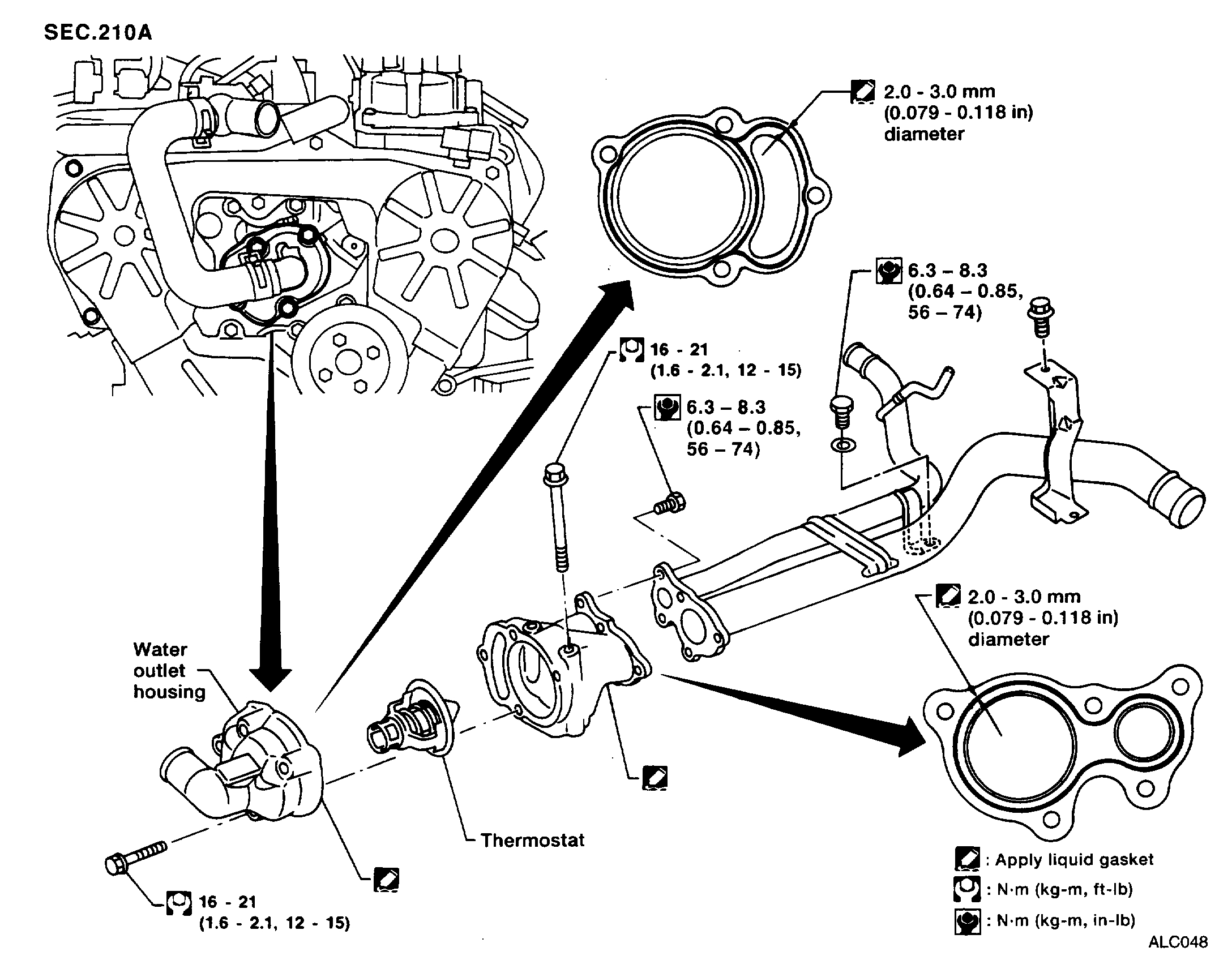 2. Apply a continuous bead of liquid gasket to mating surface of water outlet housing.