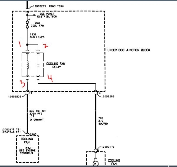 If you are disconnecting and jumping the connector at the sensor, it sounds like a connection issue. Take a look at the attached pic and let me know which sensor was replaced. There are two different types of the 1.9L so I attached a pic of both. If you replaced the wrong sensor, it will only affect the gauge in the vehicle. The other tells the computer when to turn on the fan. Also. I attached a pic of the wiring for the blower motor. It is really a simple system. Once the PCM receives a signal that requires the fan to turn on, it powers the relay and then power is sent to the fan motor. So, either the wrong sensor was replaced, there is a broken wire between the PCM and the relay, or a wiring issue to the PCM.