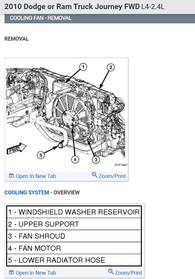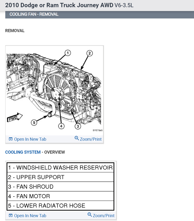 Hi Ken, we checked the fuses, and everything is good. We also let the vehicle get up to temperature and the fan did start working. We also swapped the radiator relay with another one but then the temperature on dash stopped working. Also, I find it difficult to find information for the Dodge Journey 2.7l 2010 model. Is there another name we should be using when looking as they come up as a 2.4l or 3.5l which are completely different. Thank you