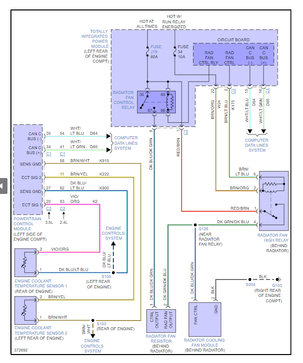 Here is the cooling fan wiring diagram so you can see how the system works. You can try to jump the cooling fan to power to test the fan motor as well. Check out the images (below). Please let us know what you find.