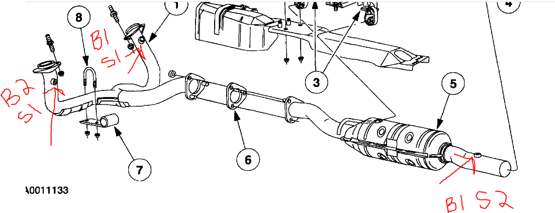 Engine is Throwing a code that says the number 2 (downstream) oxygen sensor is faulty but both sensors are up on the exhaust by headers. I replaced them both 3 to 4 years ago. Is that normal for them to go out after 3 years? Also, which would be considered the downstream O2 sensor?