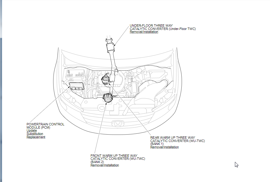 How many oxygen sensors and catalytic converters does this car have? Can you please provide a diagram of their locations?