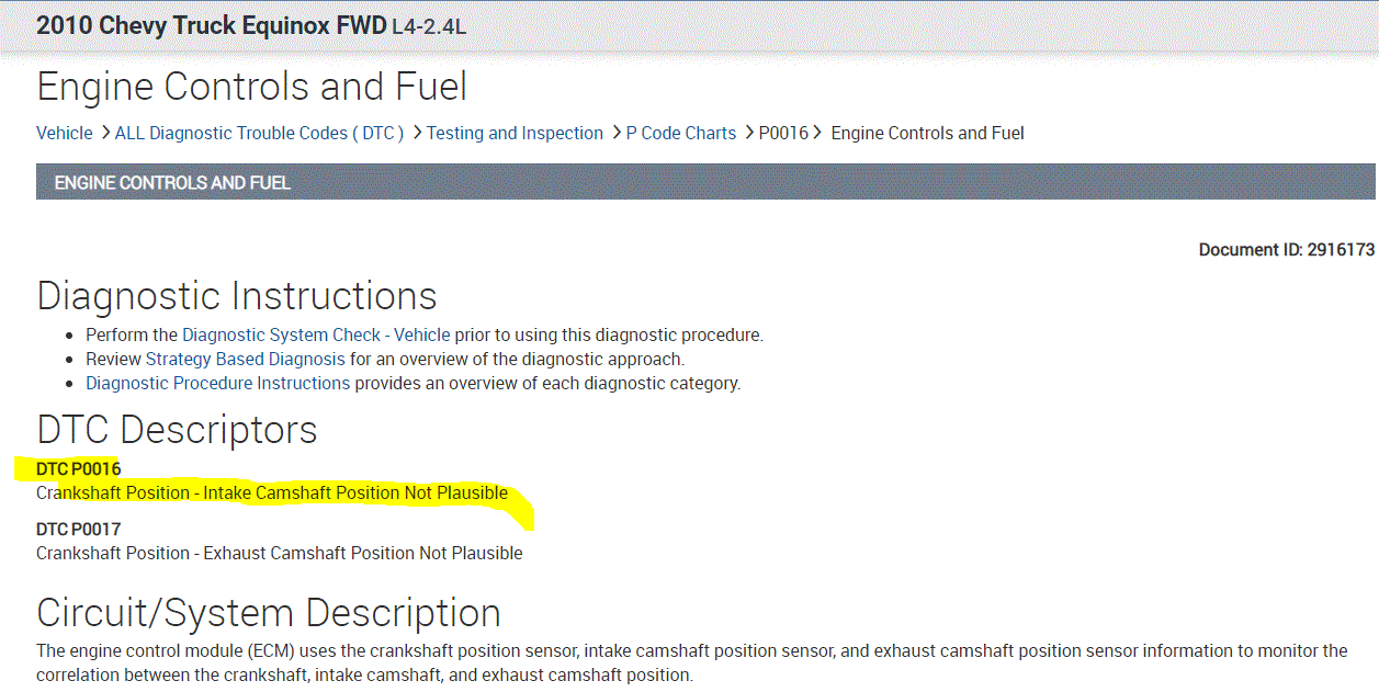 I got this car given to me and it didn't run at all. The lady said the diagnostics said something about the timing. I took apart and inspected timing chain to find the guides were broke. I replaced the guides and chain and made sure to line the mark's up. After it was all back together it started right up. I'm still getting a p0016 error code and there is no power when the gas is pushed. It will drive but not up hills or anything. I am now at a loss at what could be the issue.