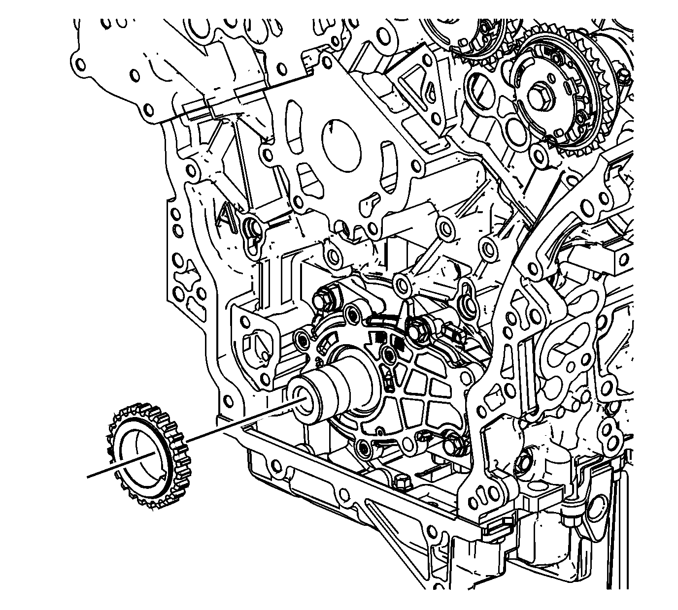 1. Remove the engine front cover. See: Timing Cover > Removal and Replacement > Engine Front Cover Replacement