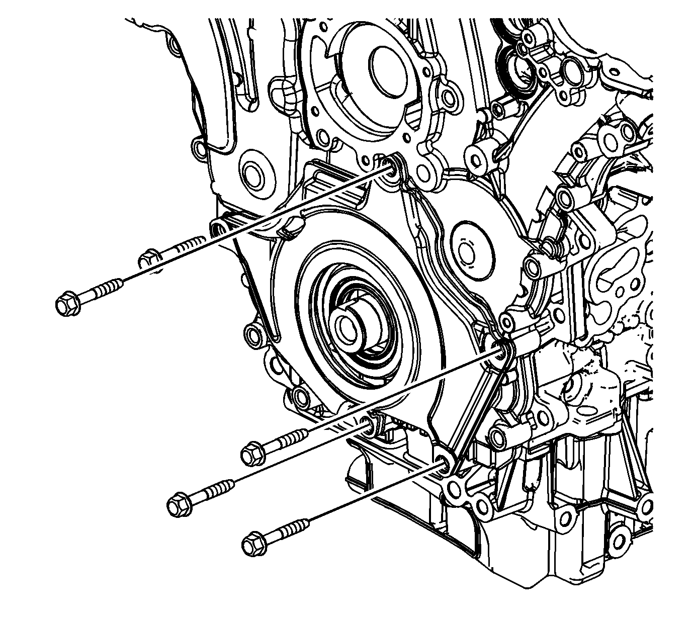 8. Loosely install the remaining engine front cover bolts.
